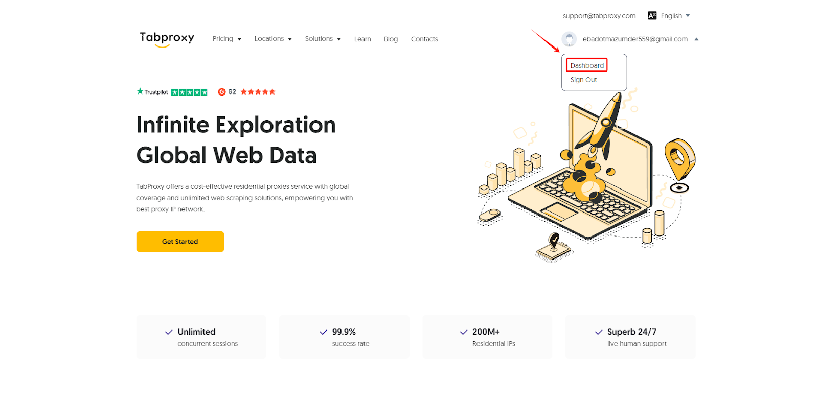 To create and log into an account, click the "Dashboard" button on the homepage to enter the operation page.