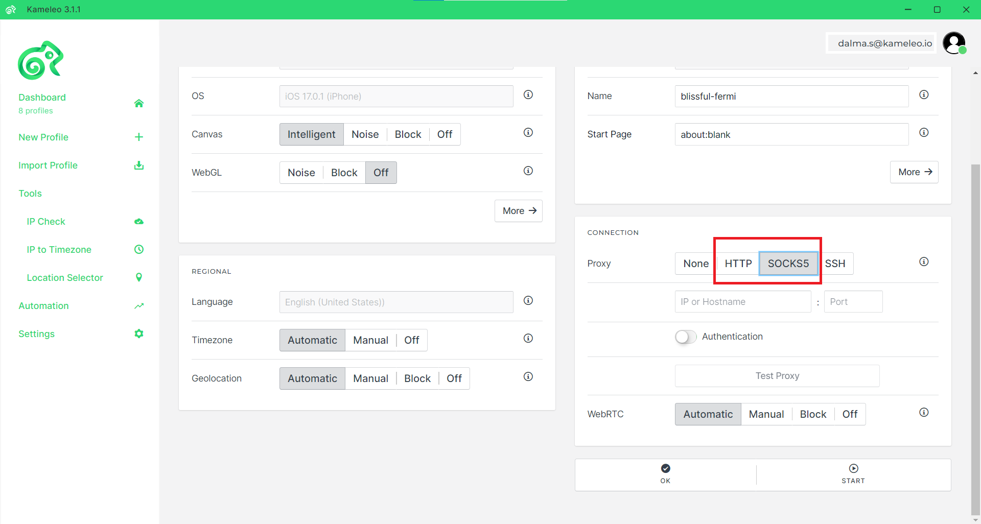 Using Kameleo with SOAX Proxy