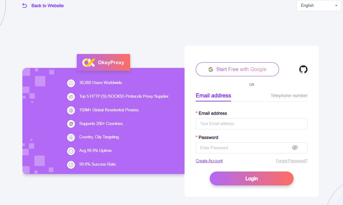 Open the OkeyProxy Website and log in to your account. If you don't have an account, you can create one and use it to enter the service.