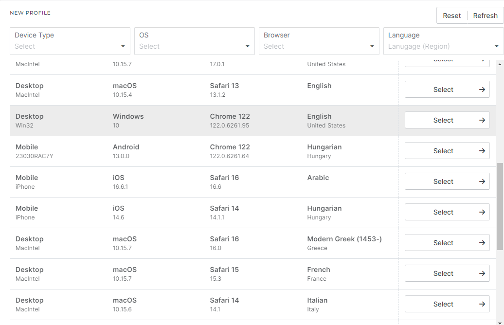 Create a Kameleo profile and ensure that the proxy's location matches the language set for the profile.