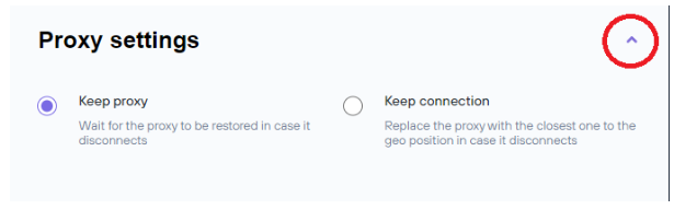 Keep proxy (default option): the option is used when the proxy server operates until the connection is lost due to the death of the proxy server and/or IP address. In case of disconnection, the system should automatically restore the connection, but it usually takes time.