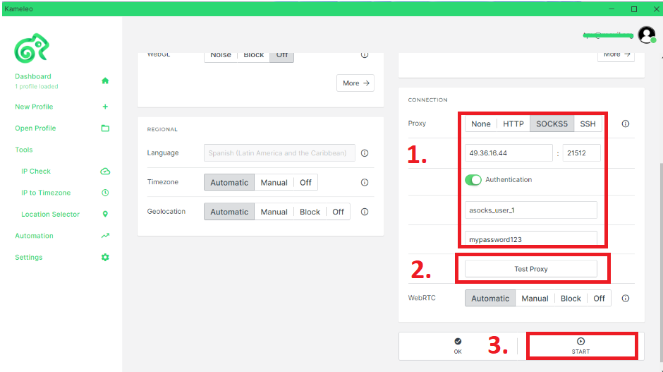 Using Kameleo with ASocks Proxy