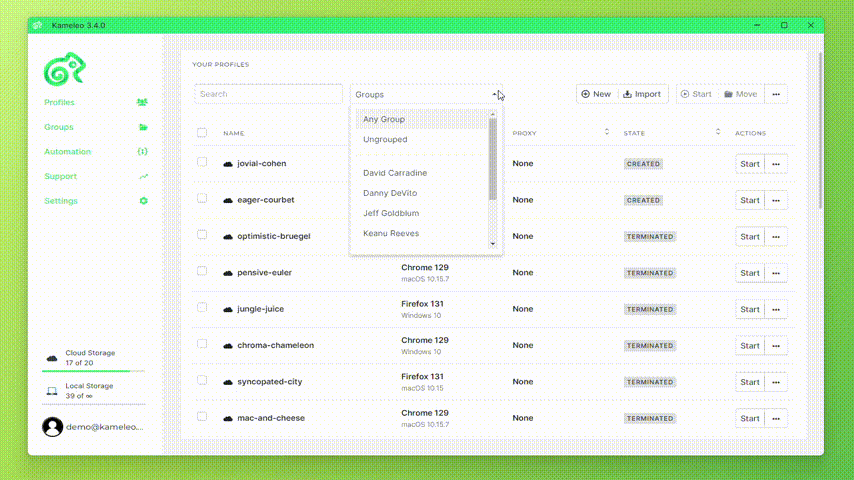 Profile Groups in Kameleo can be helpful for two reasons: