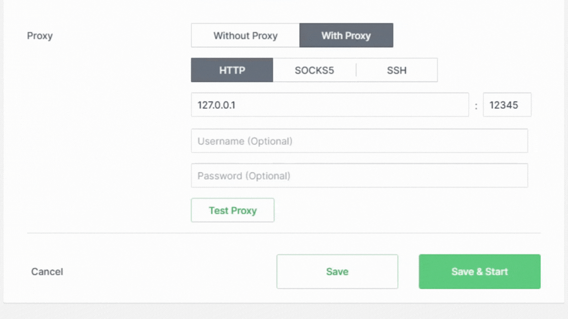 HTTP, SOCKS5, and SSH Proxies