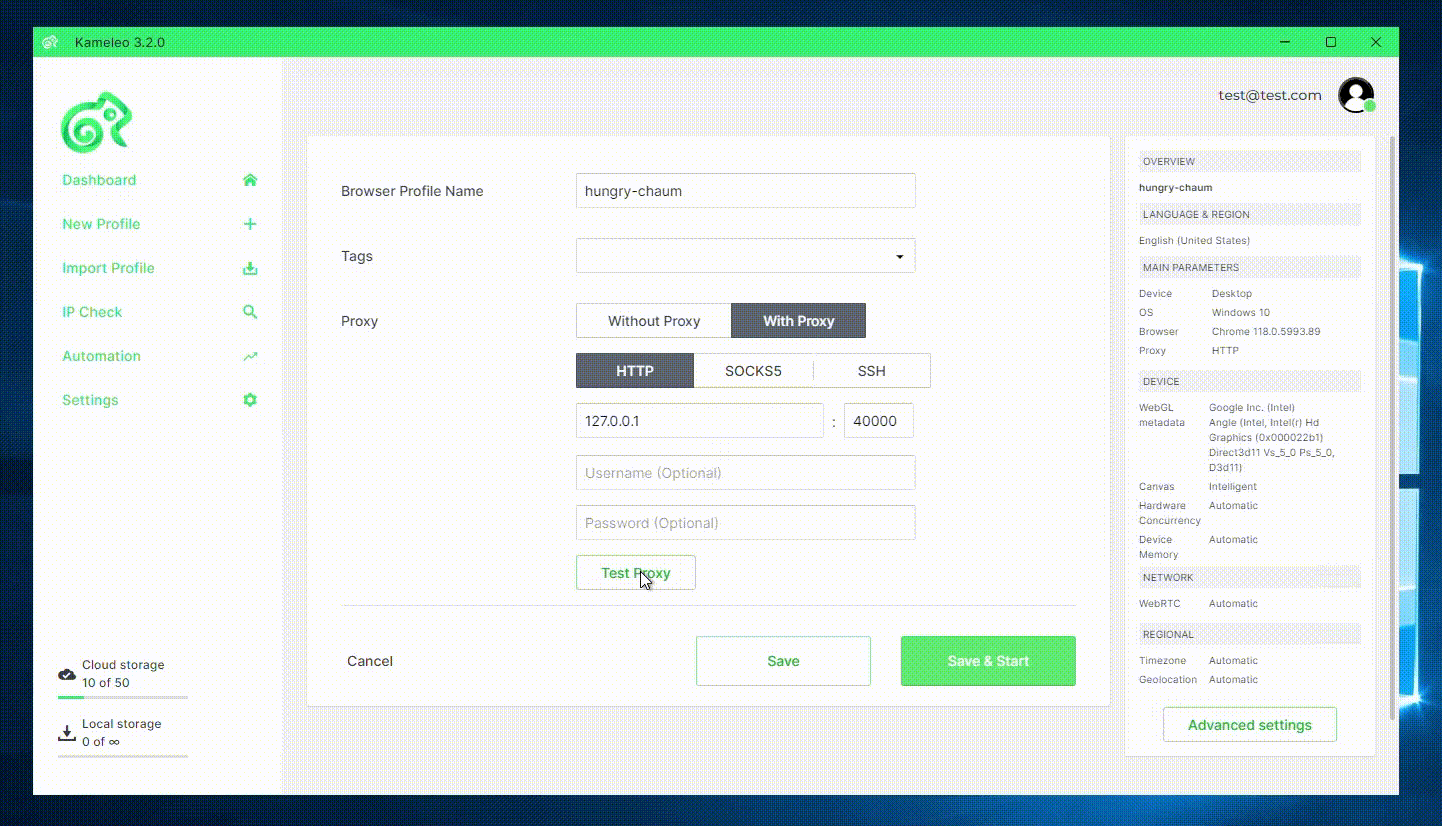You can set up Kameleo to use a proxy for your browser profiles. The Built-In Proxy Manager supports the following proxy types: