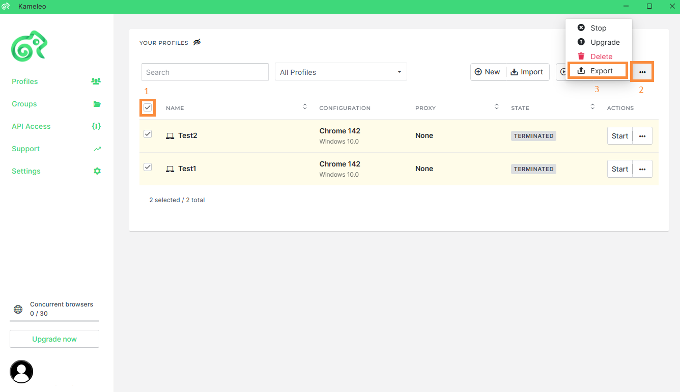 If you're working alone on the same PC, you don't need to export profiles. They're automatically stored in Kameleo's workspace folder.