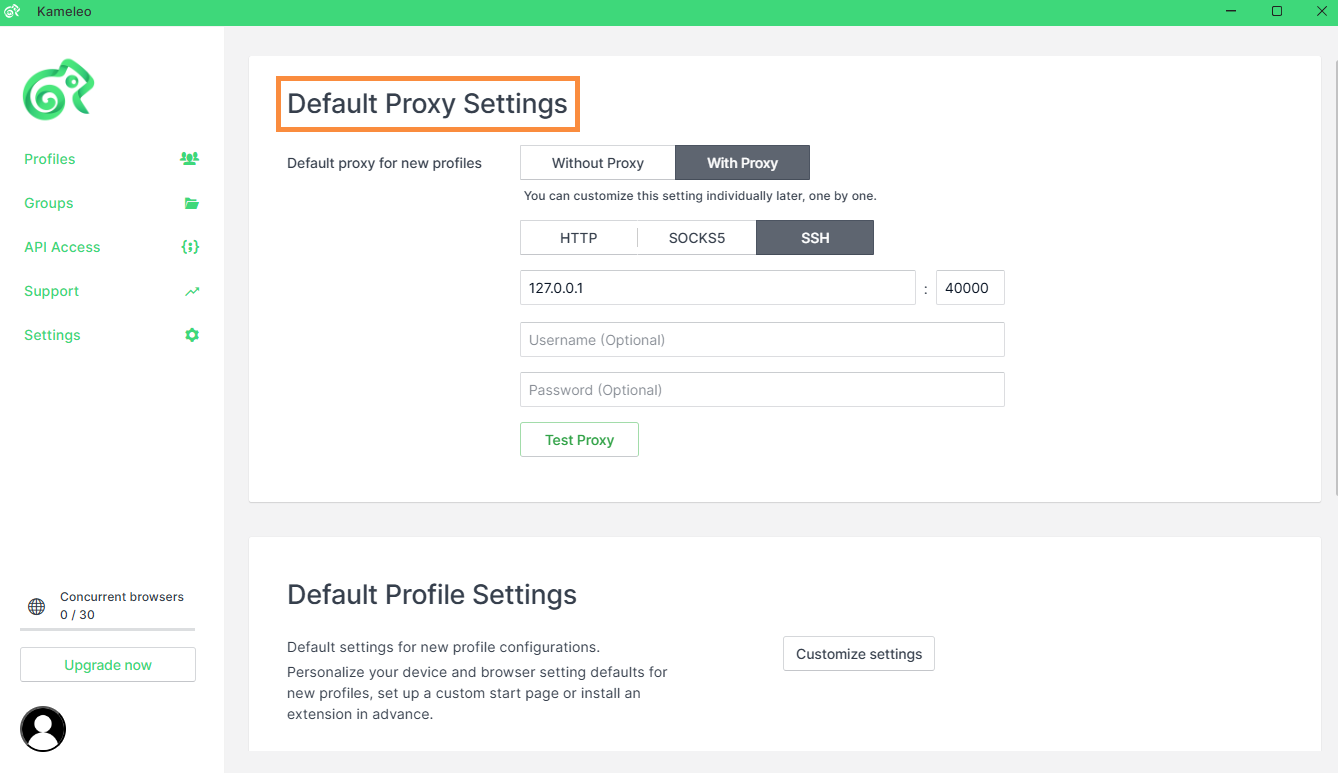 Here you can define default proxy details that will automatically populate whenever you create a new profile.