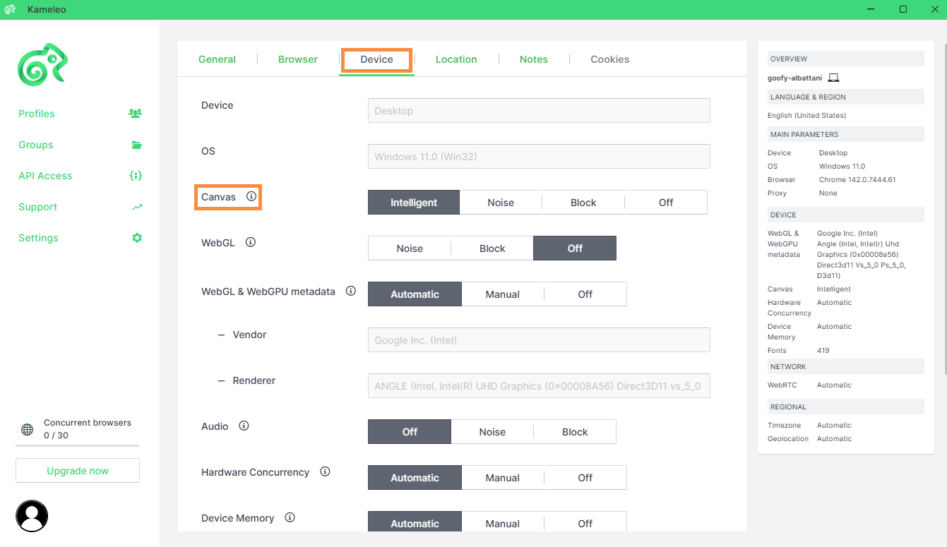 Kameleo allows you to control how HTML Canvas behaves in your Browser Profiles to prevent detection by Canvas fingerprinting.