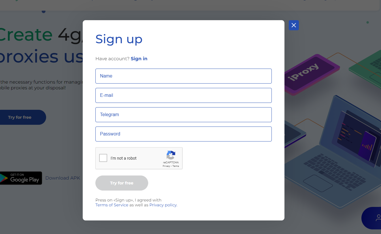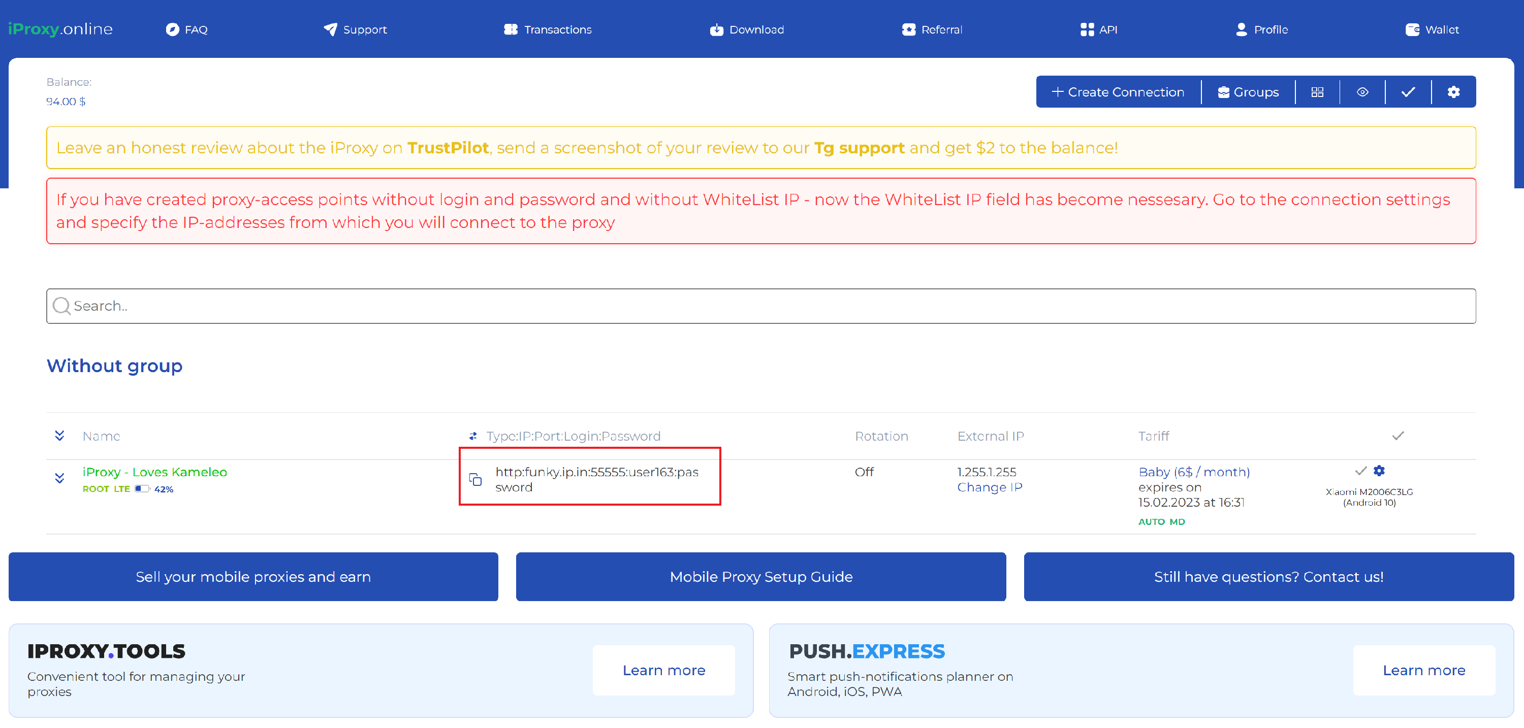 iProxy is a service offering a unique method to establish a mobile proxy using an Android device, available through a fixed monthly subscription. It provides features such as remote IP address change, the creation of multiple proxy access points from one phone, automatic IP address changes, and a Telegram bot for notifications and management. Supporting both SOCKS5 and HTTP proxies, it boasts high speeds and passive OS fingerprinting capabilities. It's positioned as a cost-effective solution for setting up reliable mobile proxies without traffic control.