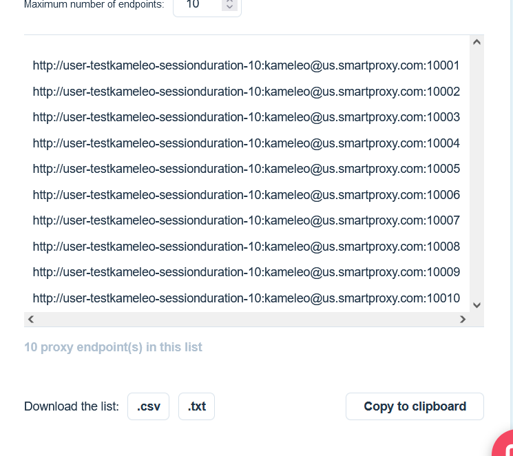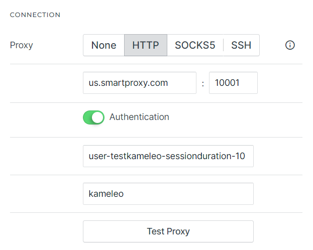 After you set everything, you can copypaste from the right panel the proxy data to Kameleo's profile.