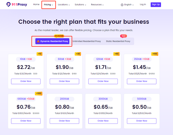 Select the right residential proxy plan on the pricing page.