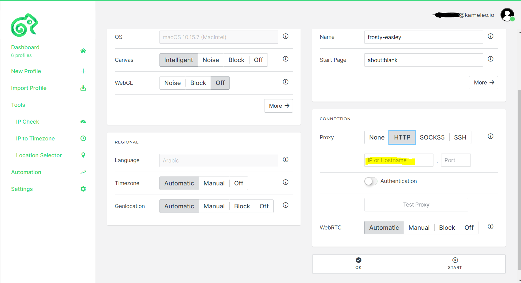 After the "copy," you can finally paste it into Kameleo. Than click to "start".